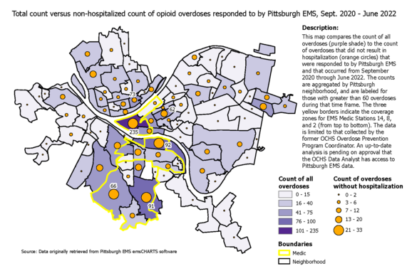 POST will initially be piloting in Medic Districts 14, 8, and 2. Those medic districts correspond to where Pittsburgh EMS's recent overdose data indicates an exponential increase in overdoses—Downtown, South Side, and the south hills neighborhoods.