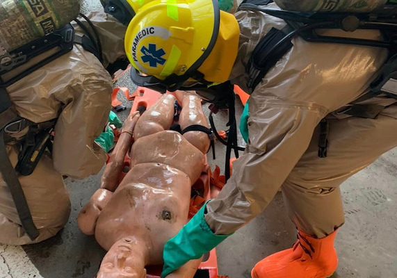 The EMS Bureau’s role on the HazMat team is to provide environmental monitoring, expert medical capabilities to include identification of potential hazards based on the symptoms of any potential victims, provide “Hot Zone” medical care to civilians and responders, administer antidotes and provide for both gross and technical decontamination of both civilians and responders. The Bureau’s ability to provide “Hot Zone” care and non-ambulatory decontamination of potential victims is an uncommon capability of HazMat teams and is another example of why Pittsburgh EMS trains to take the medicine to the patient, wherever they may be.